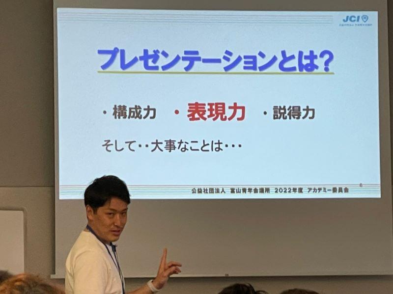 改めてアカデミー研修が一日を通して開催できたのも数年ぶりであり、新入会員メンバーにも多くの学びと経験になったのではないかと思います。アイスブレイク、JCI富山の歴史、ビジネスマナー、タイムマネジメント、プレゼンテーション、ロジカルシンキング、青年会議所の全貌と議案書、議案作成、議案プレゼンテーション、総評、エンドロールまで中身ギッシリの研修を見事に教え切ったと言っても過言ではなく、約1カ月前からしっかりと準備してきて良かったな~とスタッフ一同、胸を撫で下ろしております。