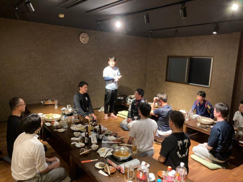懇親会では山崎先輩よりエールをいただきました