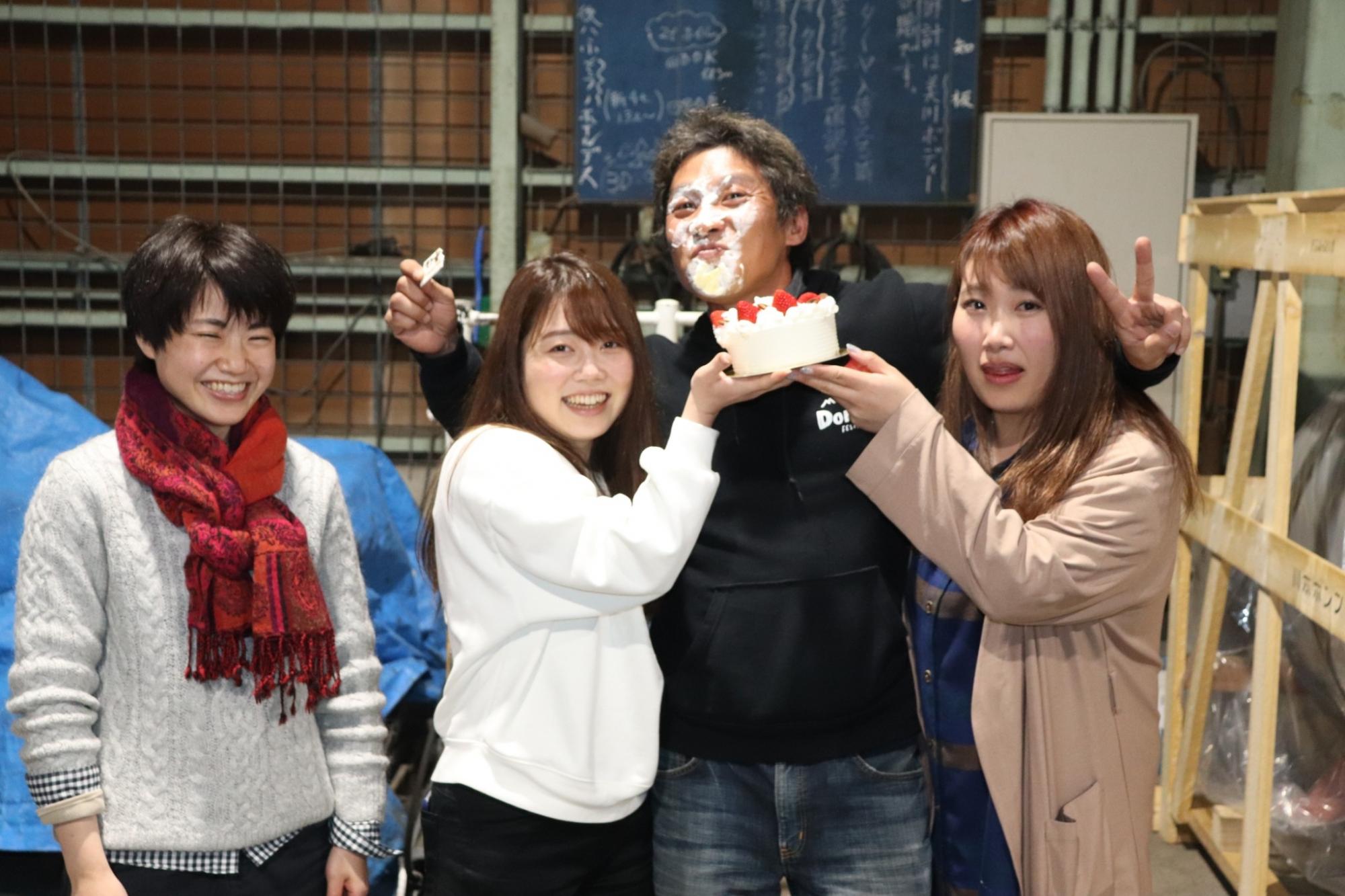 最後に・・・私みたいなやかましいだけの者にも関わらず誕生日をサプライズでお祝いをしていただき本当にありがとうございました。同期の女子にメガネを取られた時は、もしかして両サイドからほっぺたにチューされるのかと思いドキドキしてい・・・顔面にケーキ