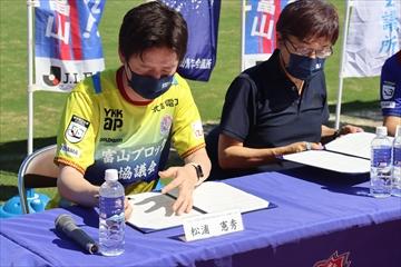 この包括連携協定は地元スポーツ振興に向けて、県内9つの青年会議所で、現在J2復帰を目指し強化中のサッカークラブを盛り上げるべく、パートナーシップをもとに、観客動員の増加や共同の事業の実施などに繋げていくことを目的としております。