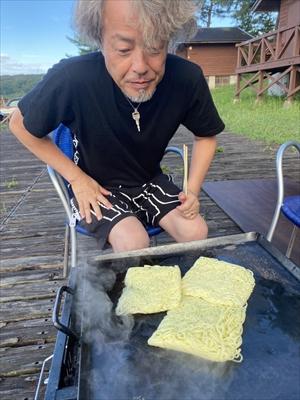 早朝から焼きそばを焼く奥野透先輩