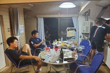 チェックインして直ぐにBBQの準備に入ります。先輩方と協力して荷物を運び出し15時から宴が始まりました。先輩方の当時の思い出や、JCへの思い、現役メンバーへの思いなど、普段は聞くことが出来ないお話を聞いたりできて「同好会って良いな~」ってつくづく思いました。話の内容についてはここに書くと果てしなくなるので割愛させていただきます。