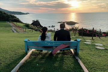 恋人岬の絶景と共に